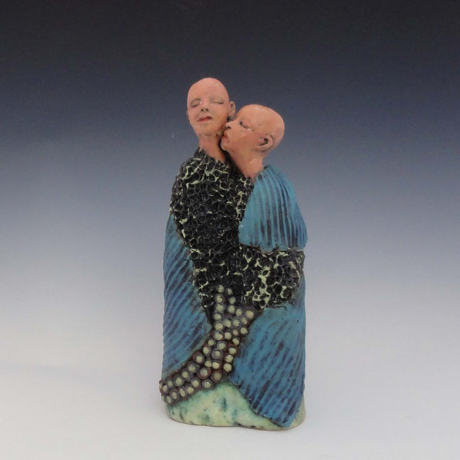 I have played in the mud in one form or another for my entire life. Now I use mud in the form of clay to create sculpted ceramic figures. My figures engage the viewer by telling stories and provoking questions. I use simple gestures that communicate emotions and relationships. Inspired by the rich organic textures and colors found in nature I decorate the surfaces of each piece to complete a visual story that transcends words.